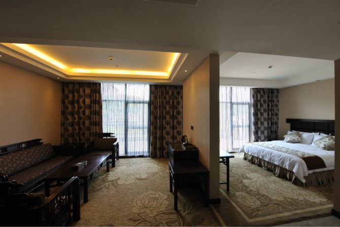 房內設施齊全,使用中央空調,37寸3D液晶電視,客房免費提供不計時國內長途電話,免費光纖網(wǎng)絡接入,紅木家具,保險箱、冰箱。酒店餐廳設有豪華餐飲包房11間。