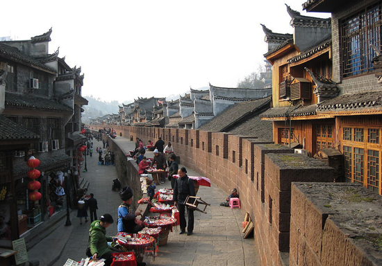 | 下午 | 下午土司城門(mén)口集合;BUS赴鳳凰途中經(jīng)過(guò)懸掛在瀑布上的千年古鎮(zhèn)—【芙蓉鎮(zhèn)】,安排晚餐。抵達(dá)鳳凰后客人自行游鳳凰夜景、漫步美麗的沱江邊。兩岸燈火闌珊,古城清幽而絢麗讓人留念往返。 |